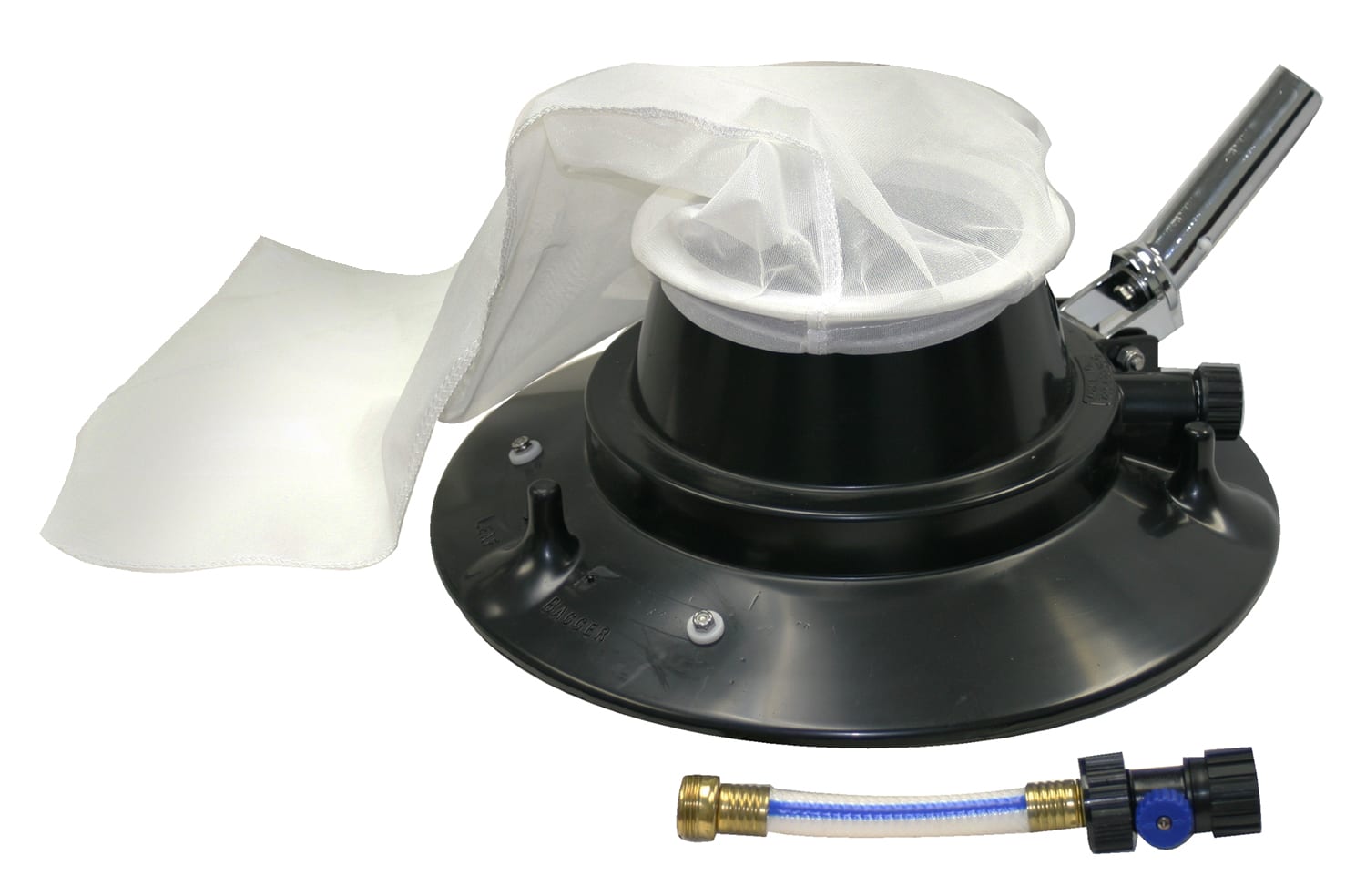 Removes leaves and debris from pool faster than any other product on the market. The Leaf Master simply hooks up to a garden hose and standard pole or automatic pool cleaner hose. Filter bag slips on or off quickly with slide closure. Swivel wheels for easy turning.