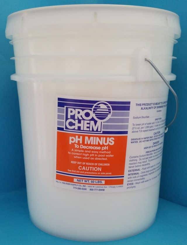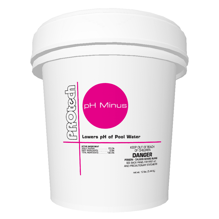 PROtech pH Minus – (Sodium Bisulfate) sometimes referred to as pH down or pH decreaser, is a granular form of muriatic acid and is safer, easier and less corrosive for lowering the pH of your pool and spa water. PROtech pH Minus is available in 6 lb. & 12 lb. pails, and 50 lb. buckets.