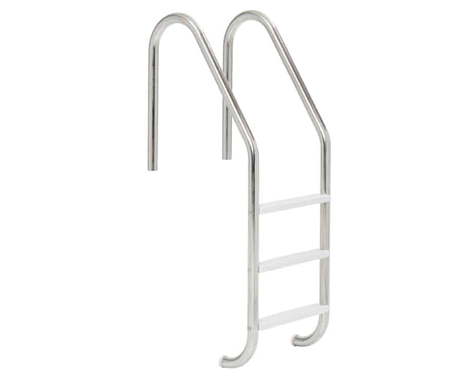 Ladder frames are made of 1.90 O.D. x 0.065 wall 304 stainless steel tube with polished and buffed finish. All bends are 6 radius. Ladder frames shall extend from pool wall 6-1/2″. Upper ends of ladder frames are fastened to the pool deck with two anchor sockets on 20″ centers. Lower ends of ladder frames are bent to meet pool wall and fitted with two white rubber bumpers.Priced on application.